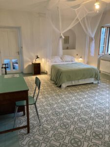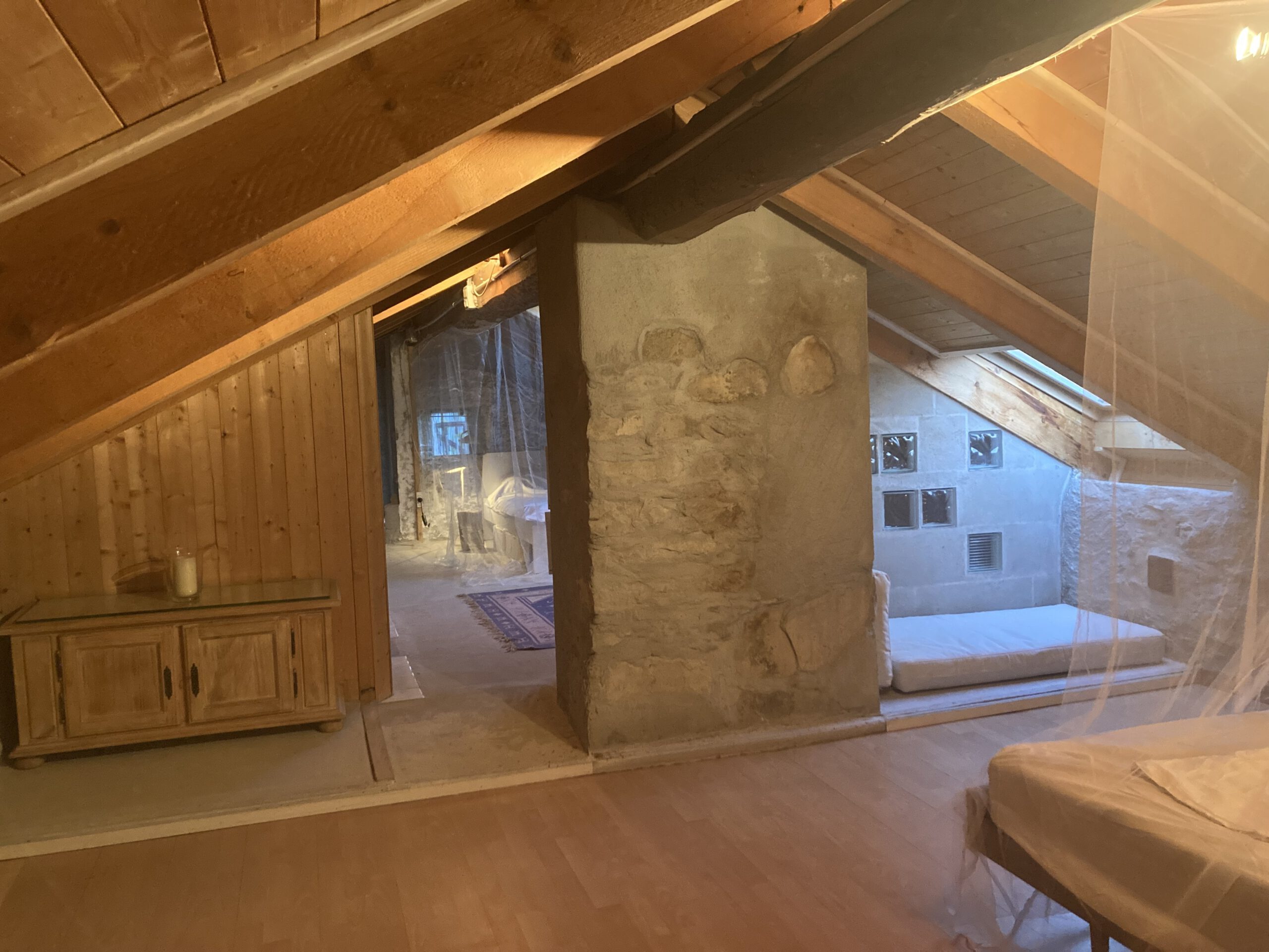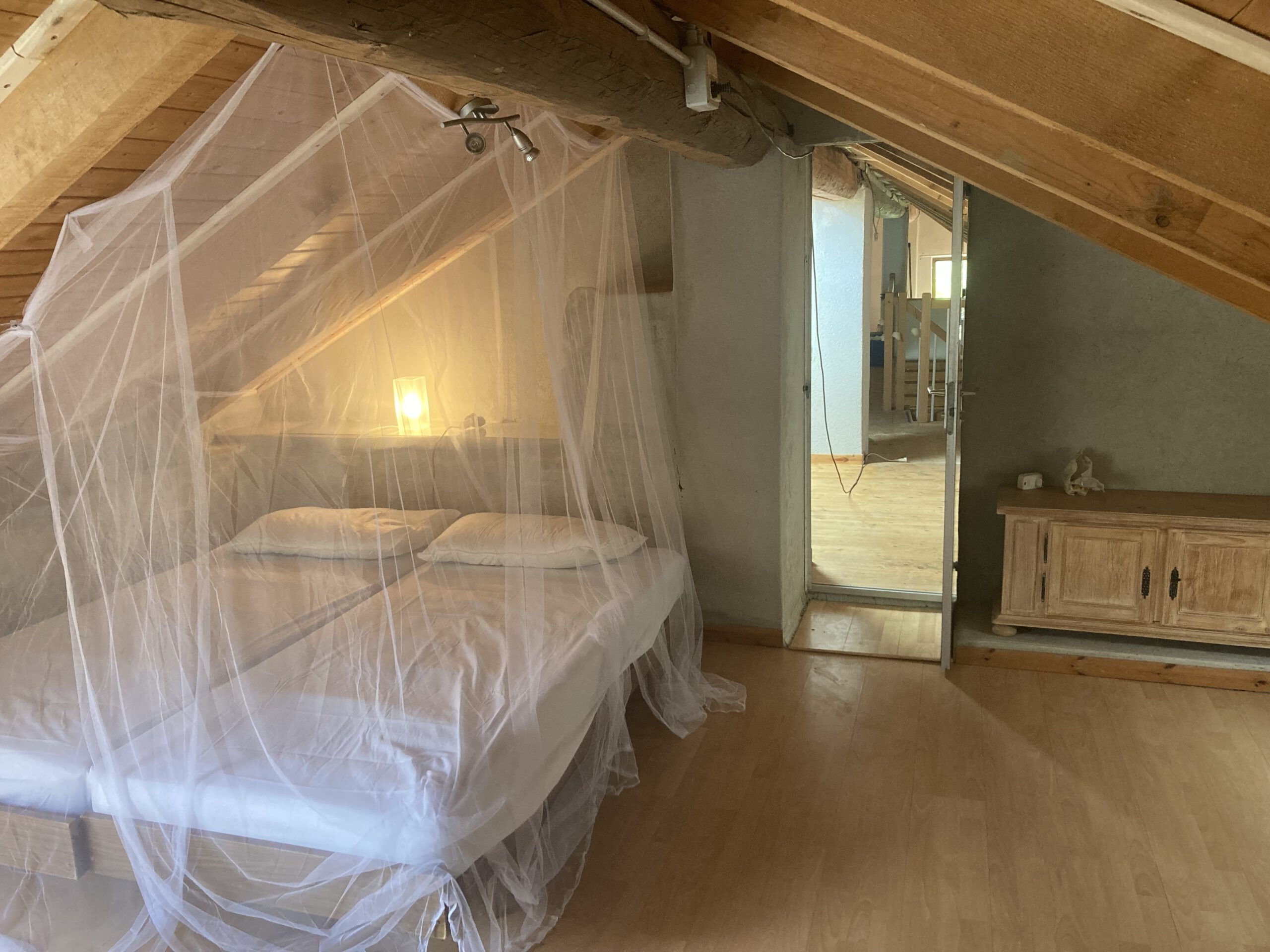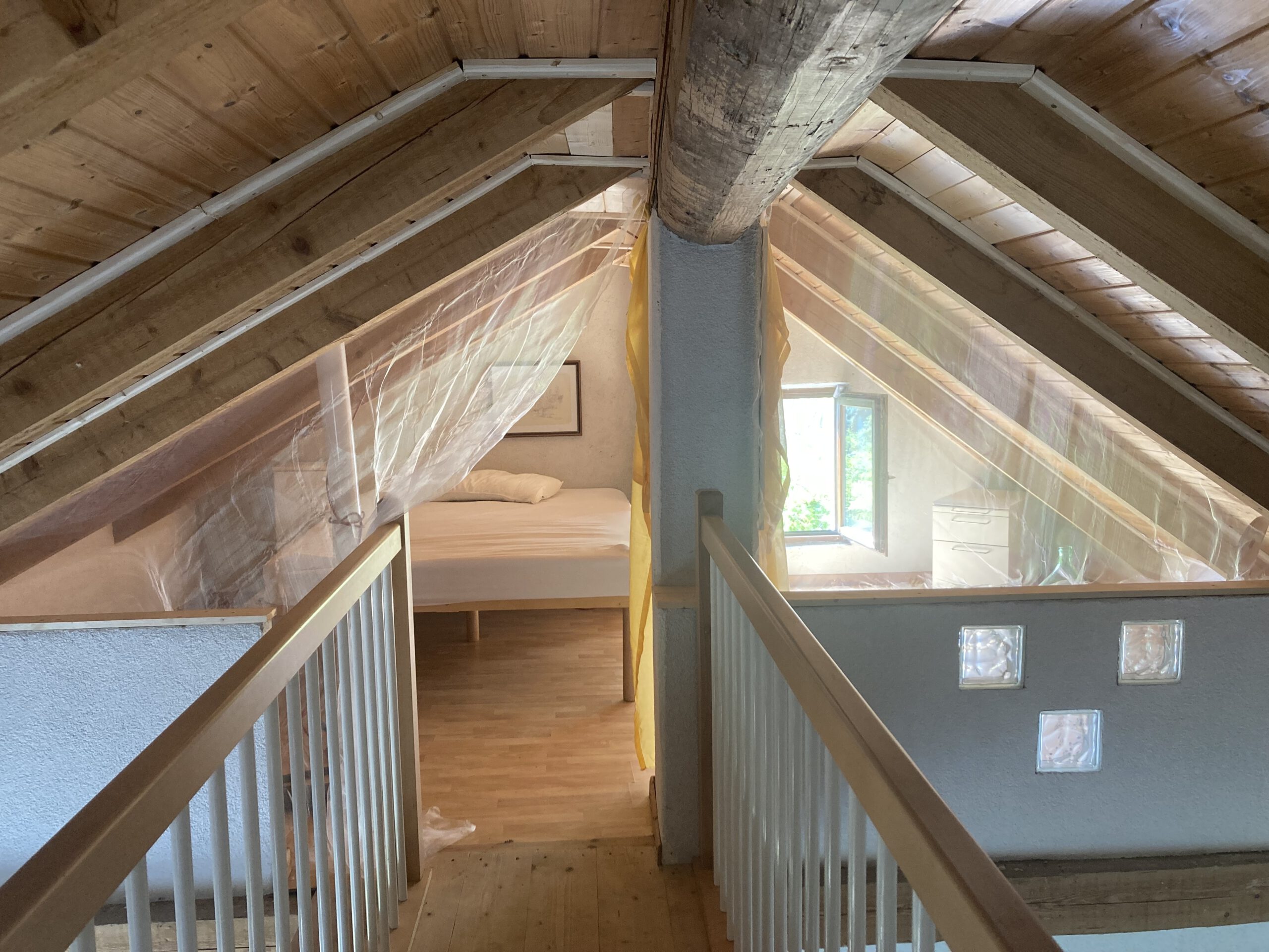 Die Zimmeraufteilung ist bewusst etwas unkonventionell gestaltet: Die Räume im Obergeschoss sind miteinander verbunden, was eine offene und gemeinschaftliche Wohnatmosphäre schafft – ideal für Gruppen, Teams oder Familien, die gerne nah beieinander wohnen.